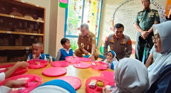 Al Haris bersama Kapolda dan Danrem memantau program makan bergizi gratis di PAUD Al Fatih Kids di Jalan Parluhutan Lubi, No.06, Telanaipura, Kota Jambi.