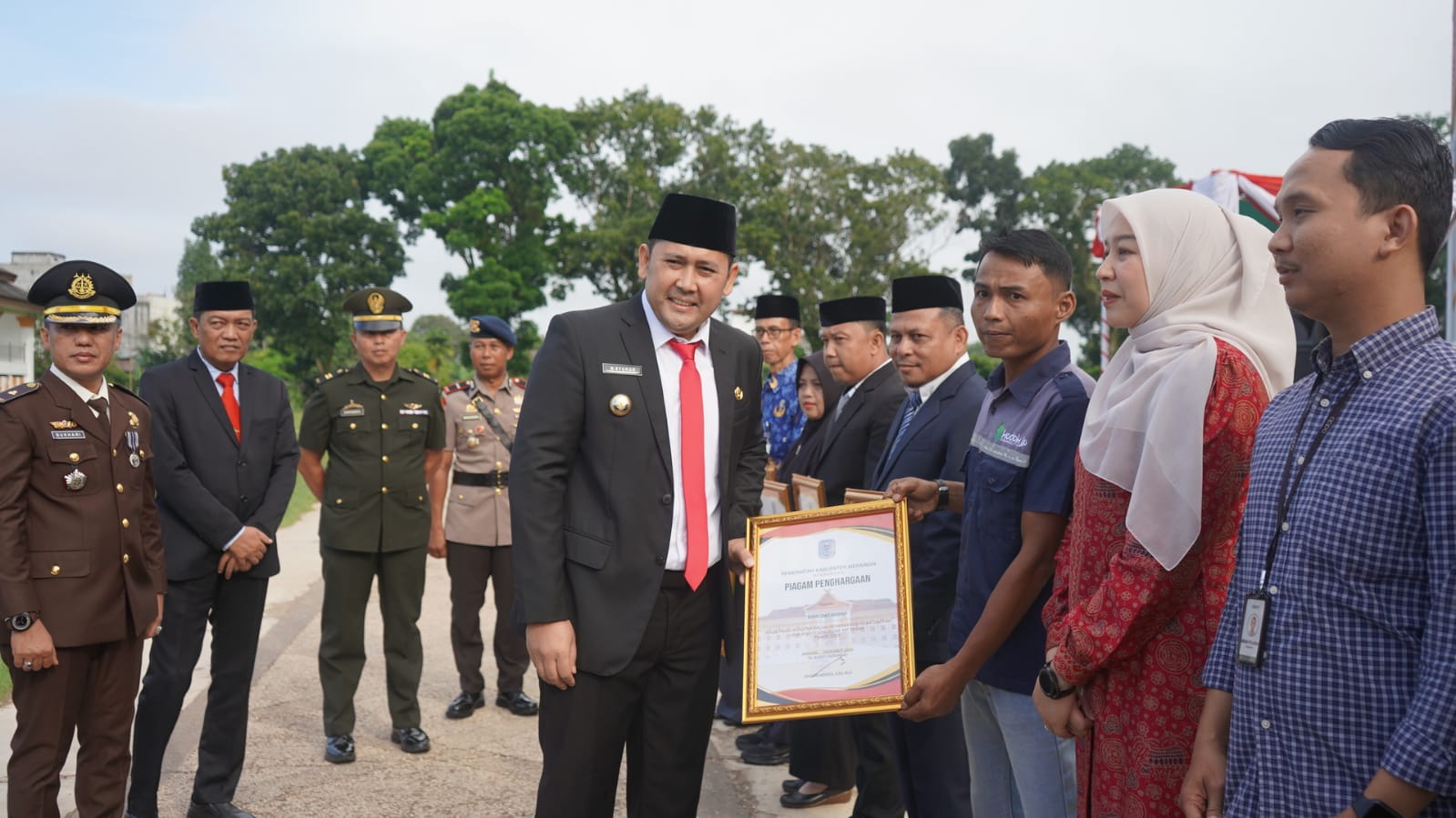 Bertindak sebagai Inspektur upacara Bupati Merangin H M Syukur. Pada upacara itu, bupati memberikan penghargaan kepada desa, Organisasi Perangkat Daerah dan pihak swasta, atas kepatuhan pemenuhan kewajiban perpajakan daerah.