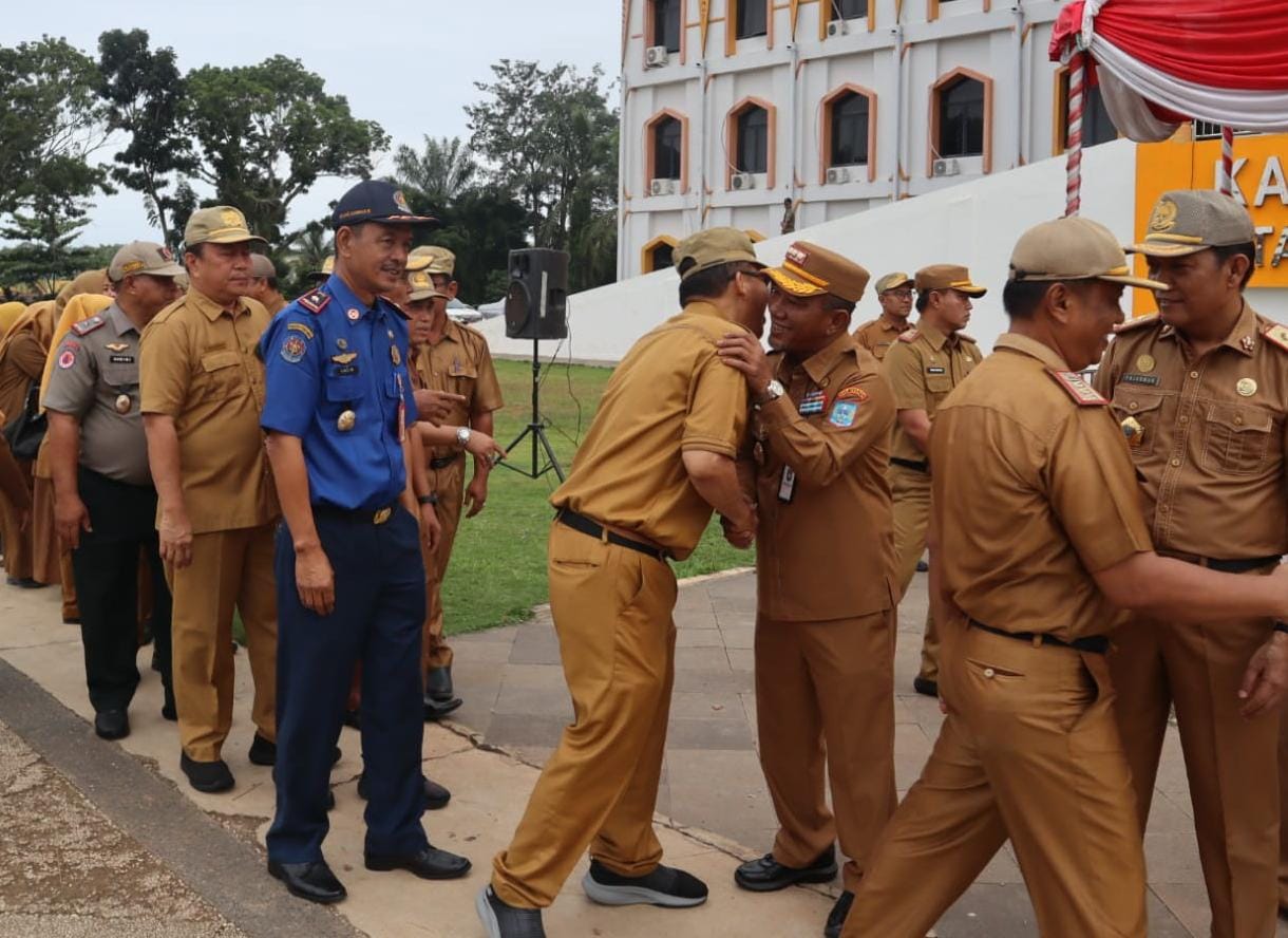 Sementara itu acara pamitan Pj Bupati Merangin Jangcik Mohza diwarnai silaturahmi dengan saling bersalam-salaman satu sama lainnya usai berakhirnya upacara kedisiplinan.