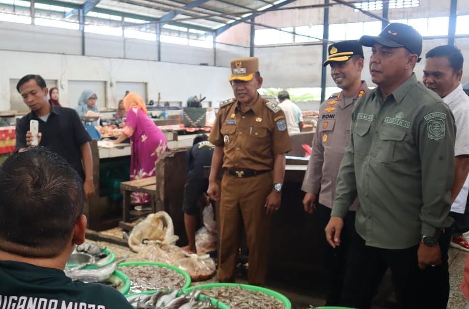 Canangjambi.com-Bangko-Jelang datangnya bulan puasa Ramadhan 1446 H, Wakil Bupati Merangin H A Khafid Moein dan Kapolres Merangin AKBP Rony Syahendra bersama Danramil 420-09/Bangko Mayor Inf Darminto, memantau harga kebutuhan pokok, Rabu (26/2).