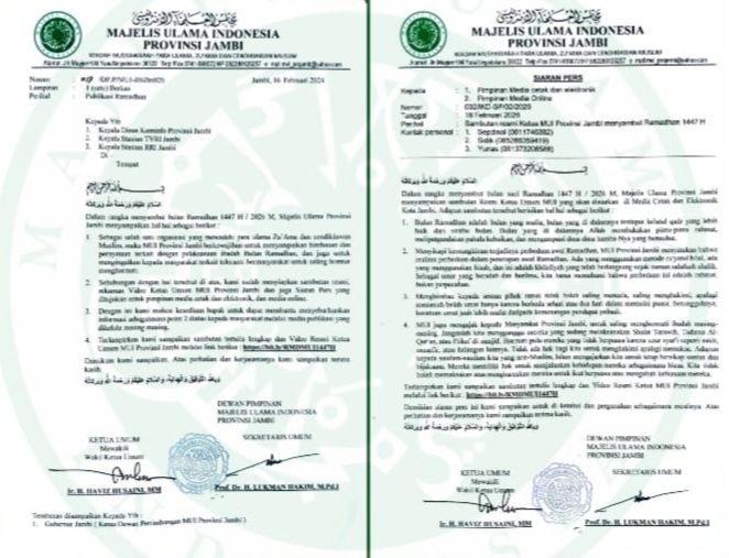 MUI berharap dengan terbitnya seruan ini, suasana Ramadhan 1447 H di Jambi dapat berjalan dengan penuh kekhusyukan, kedamaian, dan menjadi ladang pahala bagi semua pihak yang terlibat dalam menjaga kondusivitas daerah. (Damsir)