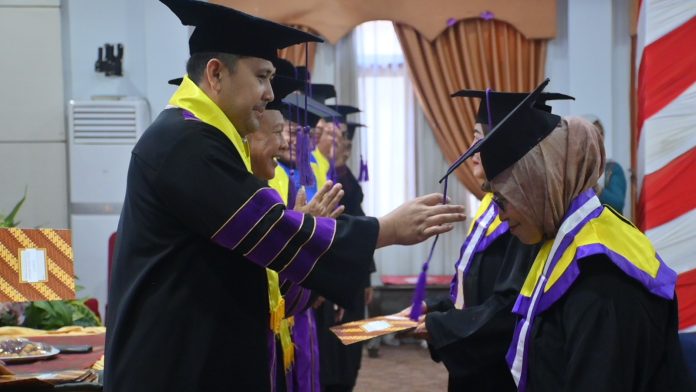 Canangjambi.id. BANGKO – Bupati Merangin, M. Syukur didampingi Wakil Bupati A. Khafidh kembali mewisuda 147 Wisudawan program Sekolah Lansia Tangguh (Selantang) Kecamatan Pamenang dan Renah Pamenang, Sabtu (7/2) di Auditorium Rumah Dinas.
