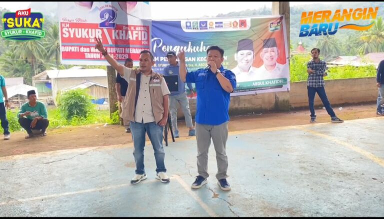 “Mari Kito samo-samo menangkan Syukur Khafid. Kalau kami, Sayo dengan Ocu opuk, telintang patah tebuju lalu, dukung SUKA tu lah. dak ado urusan soal yang lain. Kami tegak lurus. Kito bukan milih Bupati Tabir Barat, Kito milih Bupati Merangin,” tegasnya.
