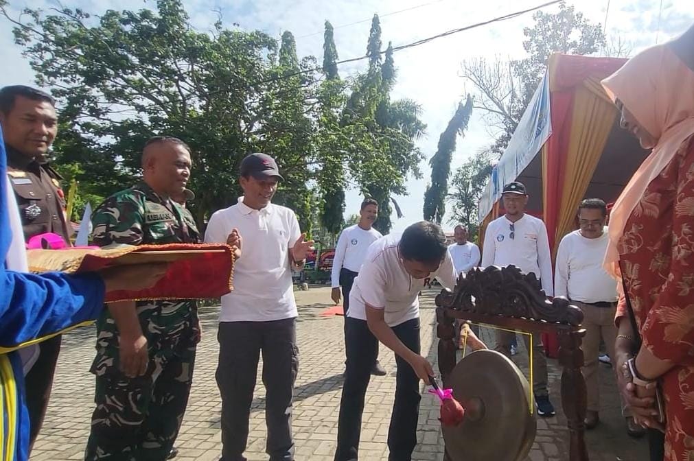 Pembukaan 02SN dan FLS3N ditandai dengan pemukulan Gong oleh Sekda Merangin Fajarman, disaksikan Plt Kadis Dikbud Hennizor, Kasdim 0420/Sarko Mayor Inf Usman.