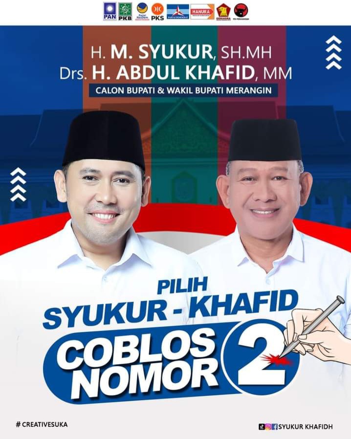 Pasangan Syukur – Khafid berharap dapat memberikan solusi konkret dalam meningkatkan kualitas kehidupan masyarakat kabupaten Merangin melalui program-program yang terfokus pada Peningkatan Pelayanan dan Kesejahteraan Masyarakat, demi kemajuan kabupaten Merangin di masa depan. ( Damsir )