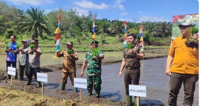 Penanaman padi serentak tersebut, dalam rangka mendukung program swasembada pangan nasional. ‘’Jadi untuk di Desa Tambang Emas ini ada sebanyak 15 hektar lahan yang siap tanam padi sawah,’’ujar Wabup.